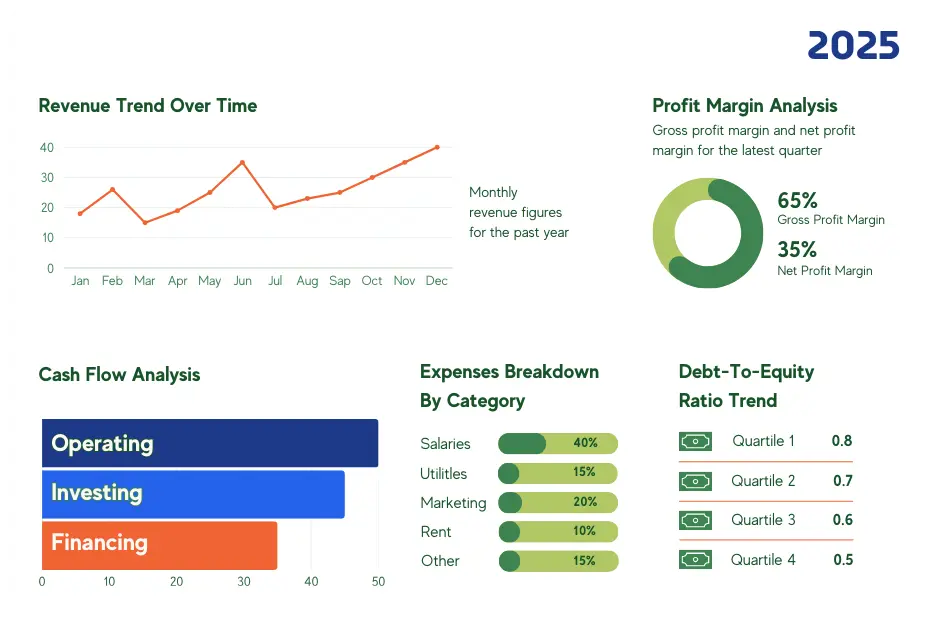 Visualize revenue, costs, and delinquency trends.